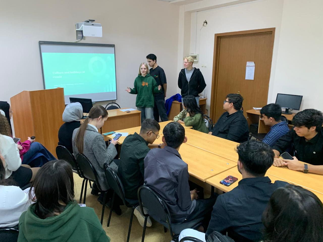 Ребята подготовили презентации на английском языке о традициях и обычаях своих стран, а затем поговорили о студенческой жизни в ПГУ.
