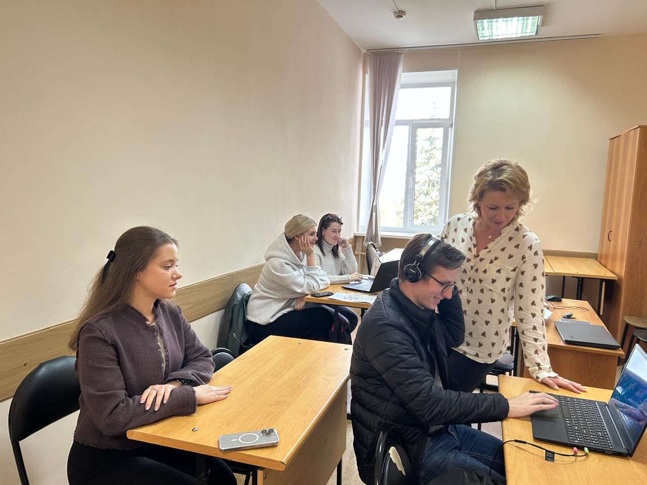 Виктория посетила занятия по Практическому курсу 1ИЯ (преподаватели Судовчихина Л.А., Сафонова О.Ю., Козина Т.А.), по Аудированию (преподаватель Хайрова Х.Ж.), по Синхронному переводу (преподаватель Щенникова Н.В.), по Практическому курсу письменного перевода(преподаватель Крюкова Л.И.)