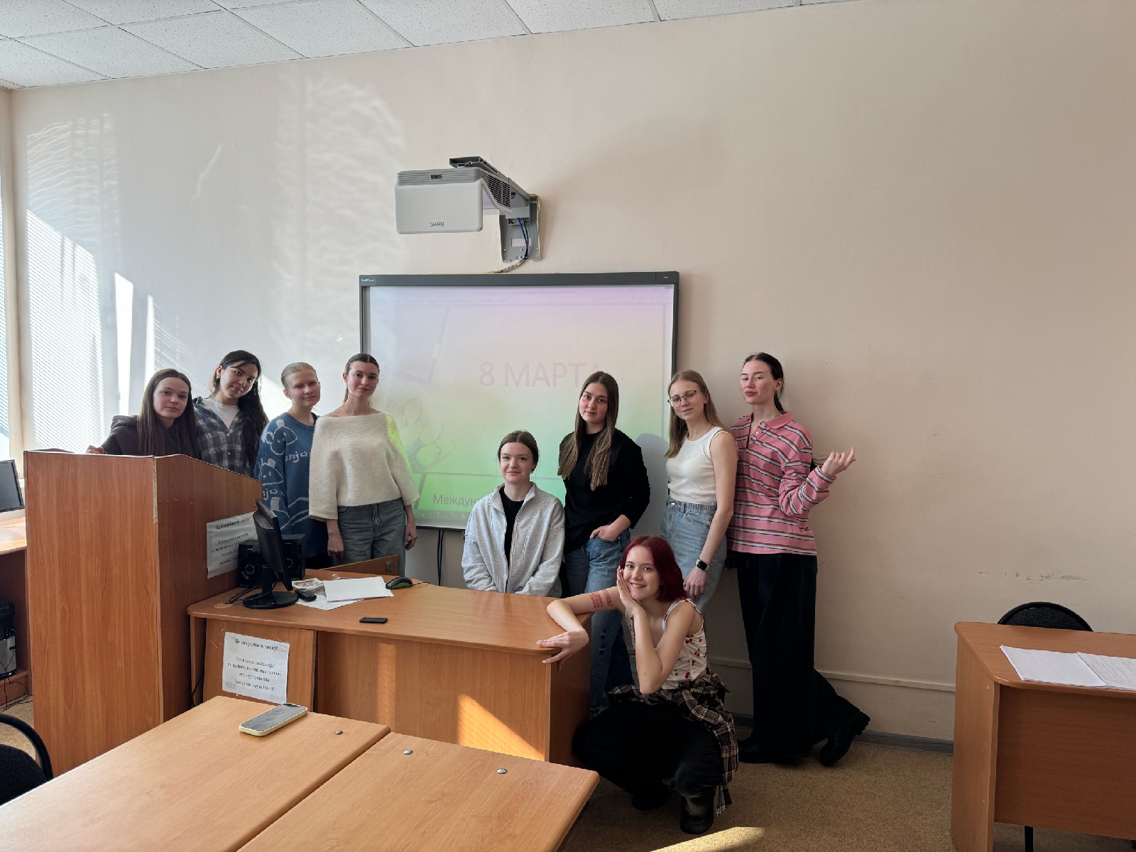 Девушки подготовили искренние поздравления для своих одногруппников с прошедшим Днем защитника Отечества, отметив их силу, надежность и поддержку. Юноши, в свою очередь, постарались создать для девушек настоящий праздник весны: в честь 8 Марта они услышали в свой адрес самые красивые и нежные пожелания и комплименты.
