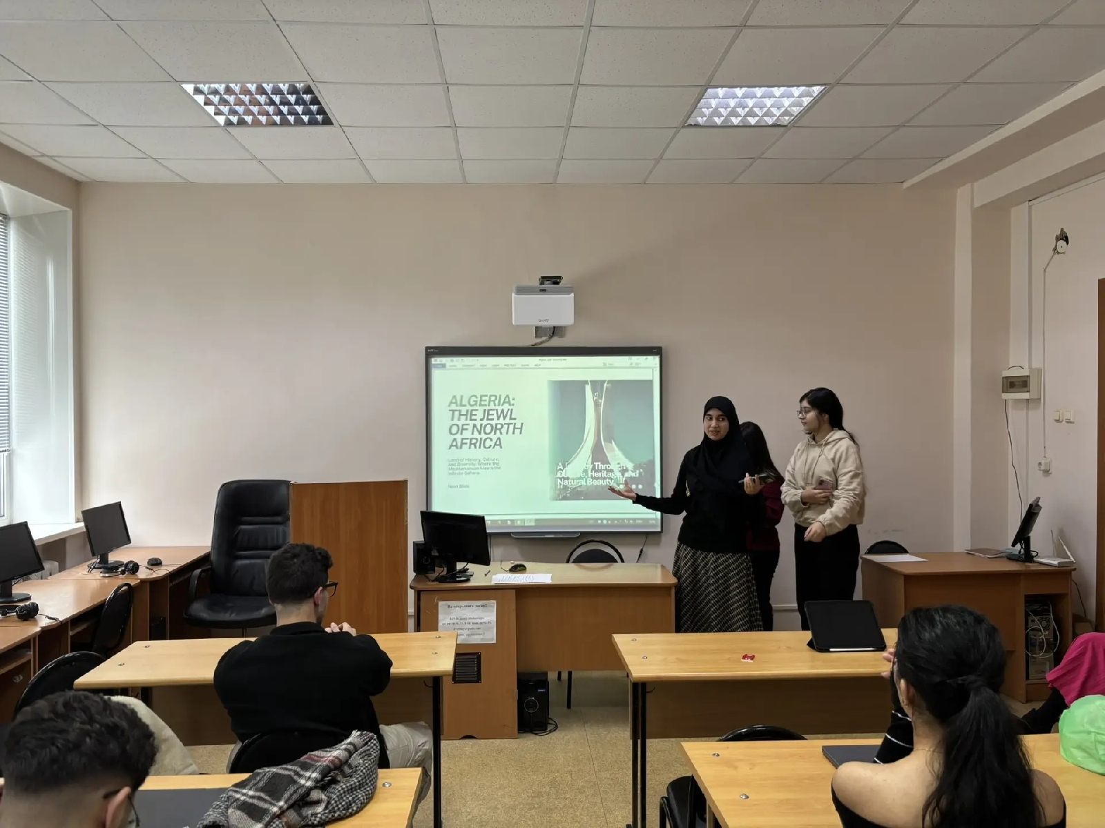 Мы обменялись информацией об особенностях культуры своих стран: России, Алжира, Марокко и Туниса. Такие далекие, но теперь знакомые страны, о жизни в которых мы смогли узнать после замечательных презентаций наших гостей. Мы узнали про арабский танец «Рахо», национальные блюда, свадебные ритуалы, арабскую музыку и ещё много-много всего! А обменяться своими культурными кодами мы смогли на английском языке. И самая приятная часть: после всех формальностей последовало непринужденное общение. Мы говорили об учебе и интересах, хобби, свободном времени и многом другом. "